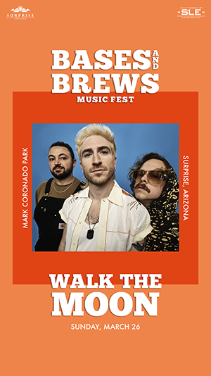 Presented by the City of Surprise and Steve LeVine Entertainment and Public Relations (SLE), Bases and Brews Music Fest is a family-friendly event that has something for everyone. During the day, the stage will feature live music from local award-winning artists and community groups, followed by a nationally renowned headliner each night. Throughout the festival grounds, guests can experience a carnival midway with over 40 rides and games, as well as interactive activities for all ages. There will also be an opportunity to indulge in your favorite festival foods, beer and spirits.